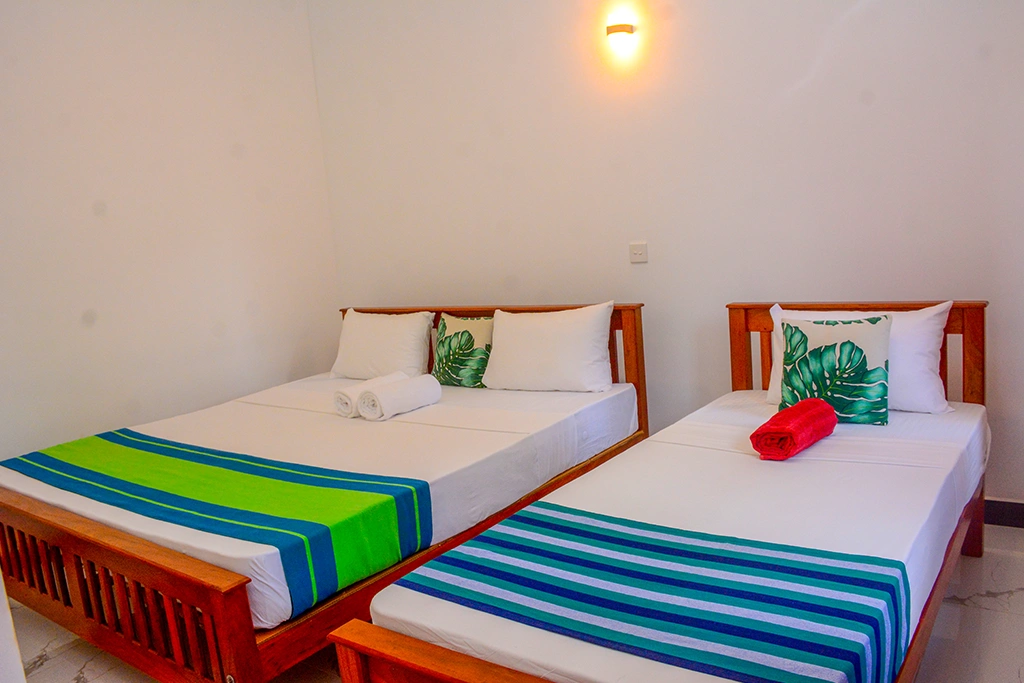 Blue Birds Tissa & Yala safari in Tissamaharama offers family rooms with air-conditioning, private bathrooms, and garden views. Each room includes a dining area, work desk, and free WiFi.